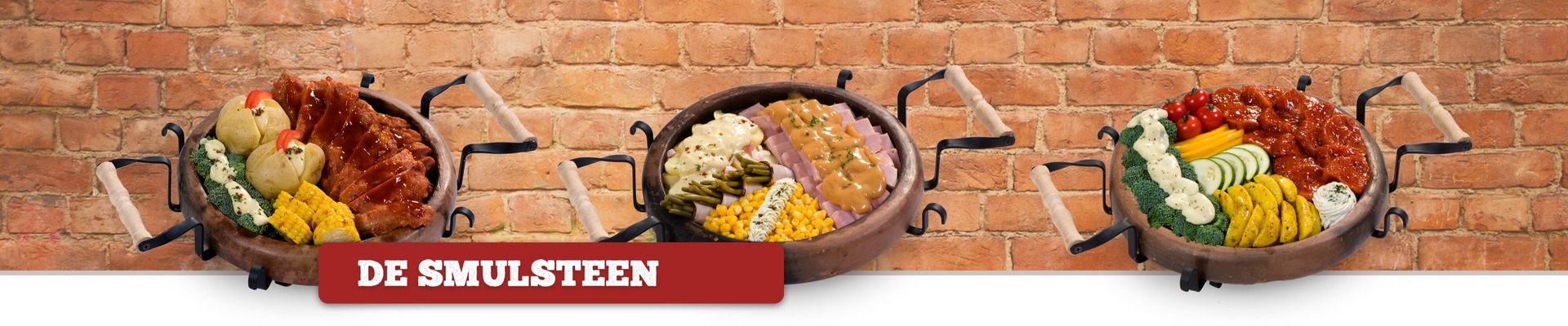 Een smulsteengerecht is voor ongeveer 2 personen. Voor de smulsteen betaalt u € 15,- borg die u terug krijgt bij inlevering van onbeschadigde steen.